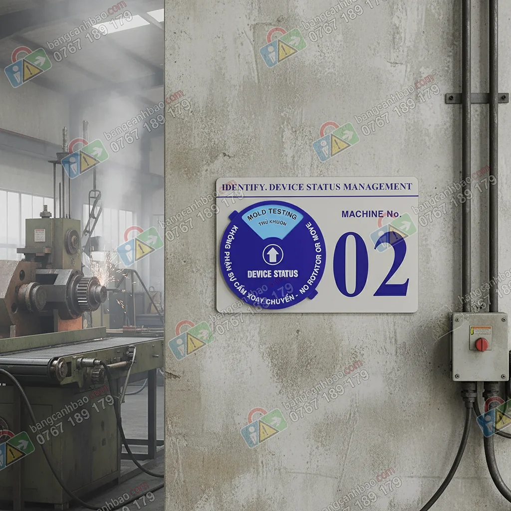 Bảng trạng thái thiết bị vận hành song ngữ là giải pháp trực quan giúp doanh nghiệp quản lý tình trạng hoạt động của máy móc trong nhà xưởng, khu sản xuất một cách rõ ràng, thống nhất và an toàn. Sản phẩm đặc biệt phù hợp với các nhà máy có nhân sự đa quốc gia hoặc áp dụng tiêu chuẩn quản lý quốc tế.