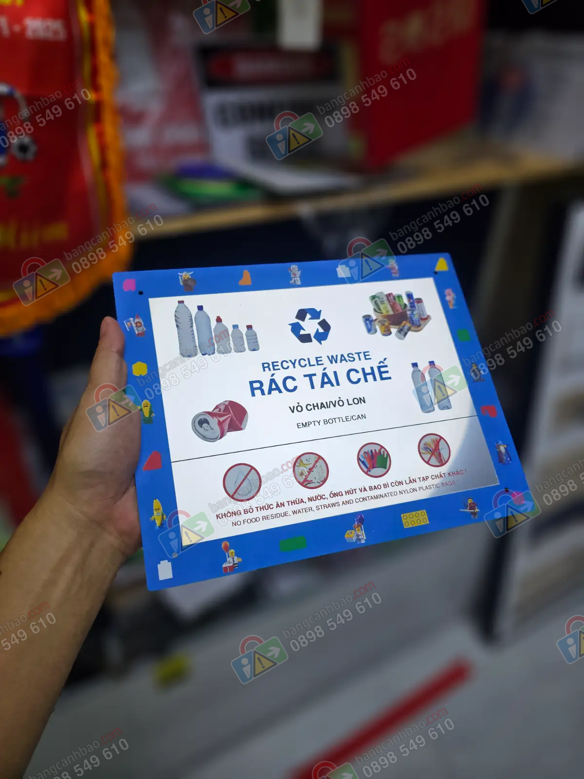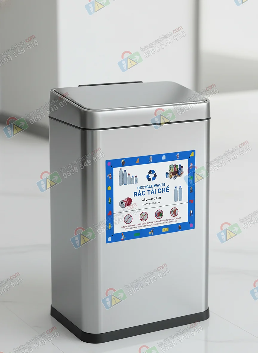 | Nội dung in | Biểu tượng phân loại rác + chữ hướng dẫn (Song ngữ Anh – Việt) |