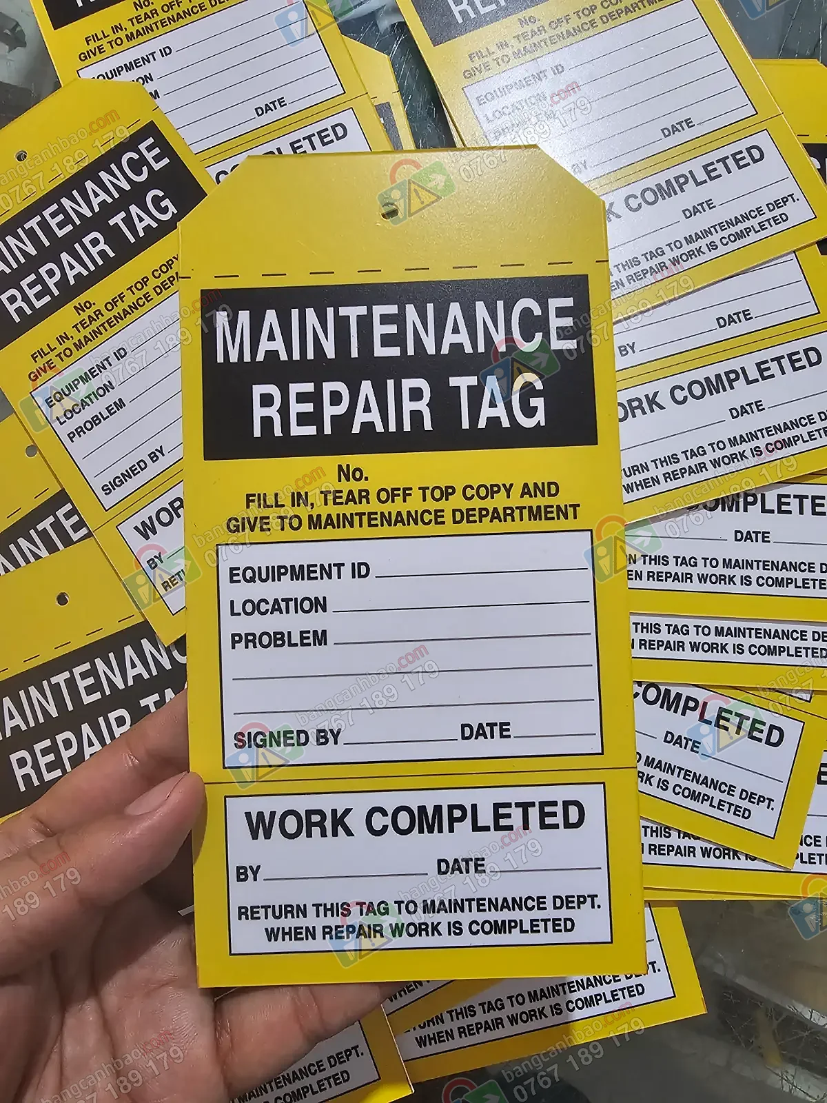 Thẻ tag sửa chữa bảo trì (Maintenance Repair Tag) là loại thẻ quản lý thiết bị được sử dụng phổ biến trong nhà máy, khu công nghiệp, xưởng sản xuất nhằm đánh dấu các thiết bị đang trong quá trình bảo trì, sửa chữa hoặc kiểm tra kỹ thuật. Thẻ giúp nhân viên dễ dàng nhận biết tình trạng máy móc và tránh vận hành khi chưa hoàn tất sửa chữa.